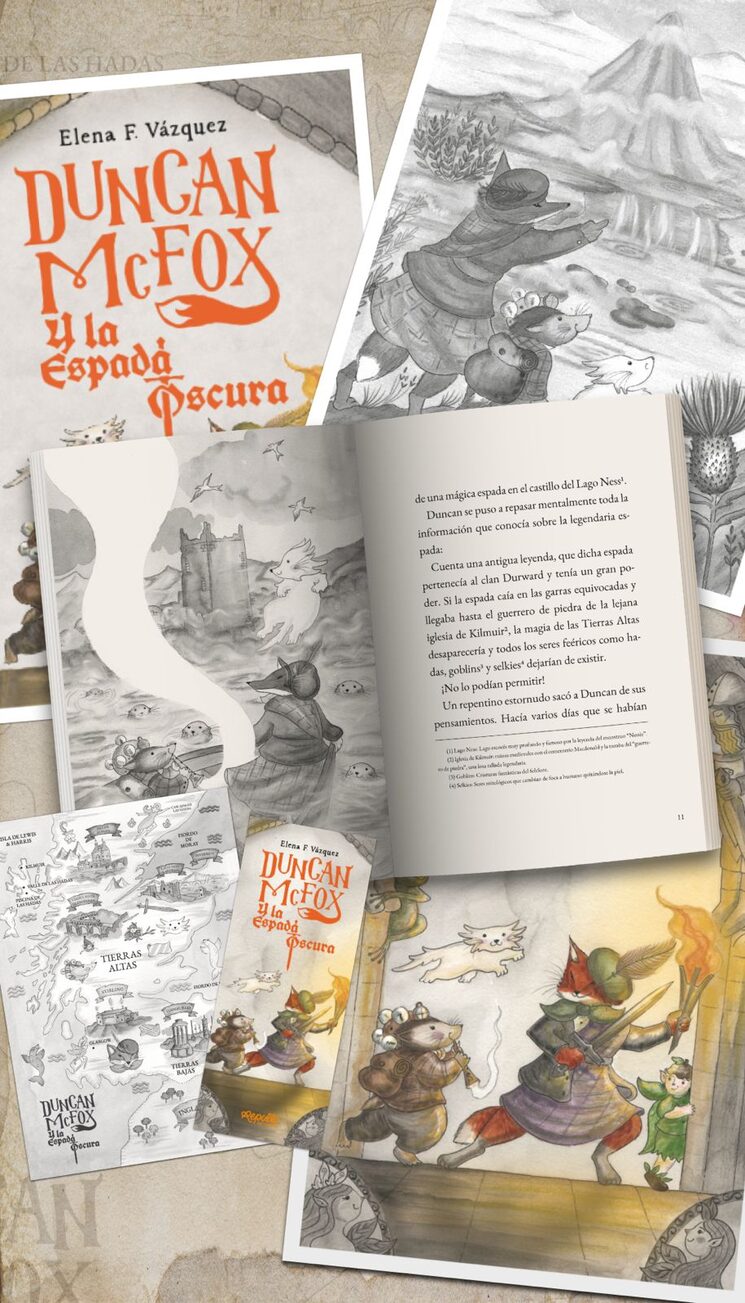 He puesto en este proyecto el mismo cariño de siempre y también magia 🪄✨, amistad, humor, valores y un viaje por las Tierras Altas de Escocia 🏰, acompañado de ilustraciones hechas con técnicas tradicionales y mucho amor por el detalle 💫.