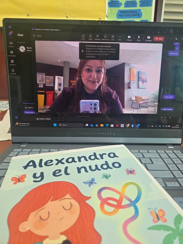 El nudo de Alexandra se quiere soltar, con hilos de risa, con ganas de hablar. Si juntas tus manos y escuchas su voz, el nudo se afloja, se siente mejor.