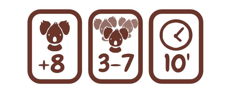 Objetivo es lograr la menor cantidad de puntos (dopamina) posibles para mantenerte "zen", mientras haces que el resto de koalas koalapsen con distintas cartas y efectos. Si los sacas de quicio, el juego será más divertido