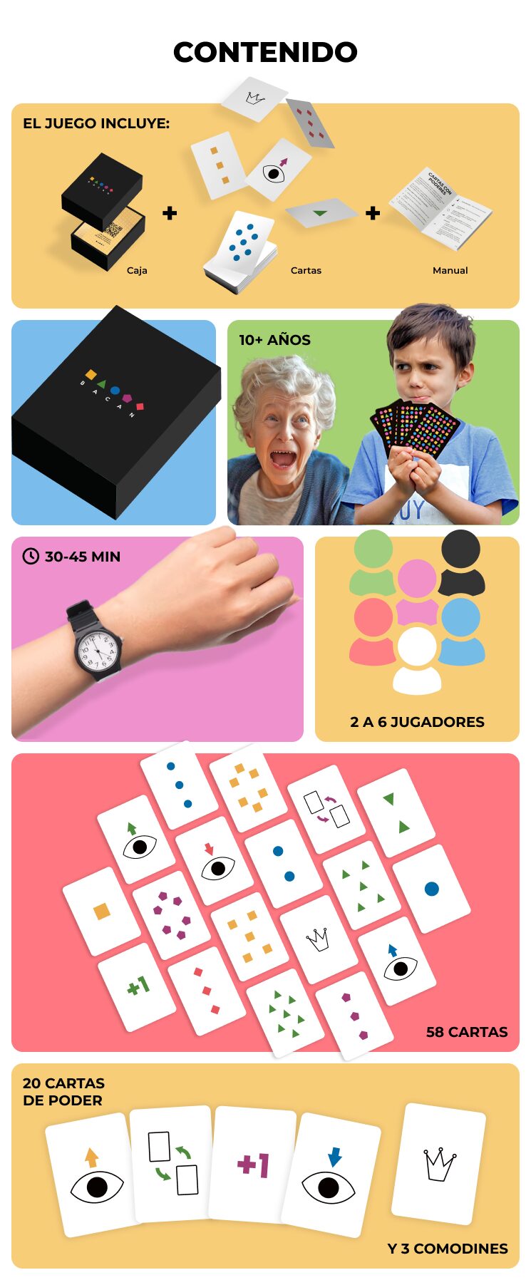 Eso es Bacán: 58 cartas de agilidad, memoria y malicia sana que convierten cualquier sobremesa en un ring de carcajadas. Inspirado en la tradición de enseñar el juego “boca a boca”, hoy venimos a pasarlo a la historia… contigo.
