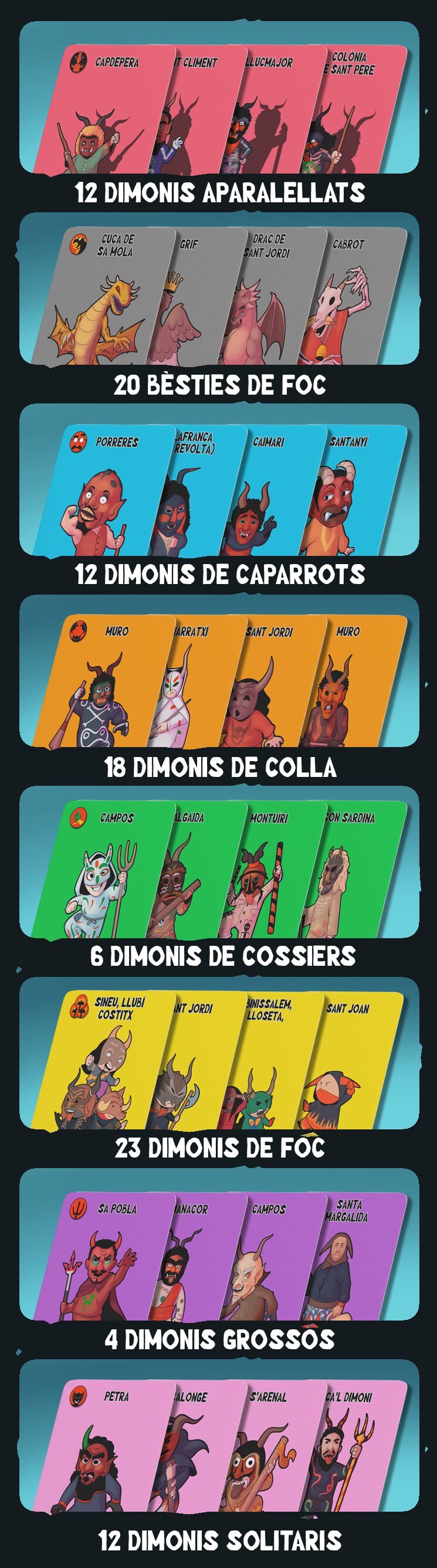 Hem classificat els dimonis en diferents tipus, i els hem distribuït així: