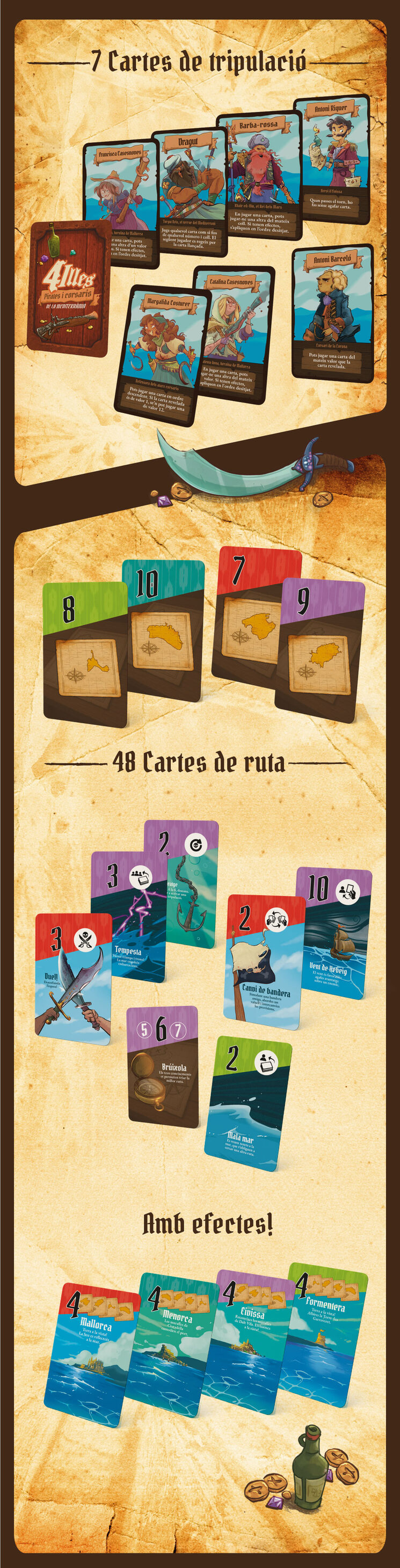 Les cartes 4 Illes, una per a cada illa, són comodins que es podran usar en qualsevol moment i sempre serà bo tenir-ne a la mà perquè t’acostaran a la victòria.