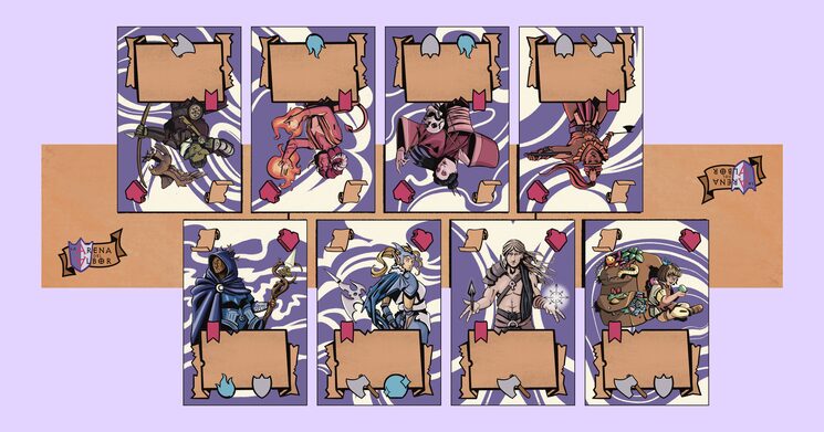 Al comienzo de la partida, los dos Jugadores formaréis vuestro grupo de cuatro Aventureros mediante un draft y los colocaréis en el Tablero.