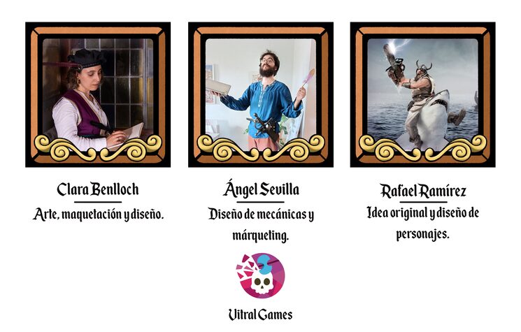 Somos Vitral Games, un grupo creativo de juegos de mesa conformado por Ángel Sevilla (@Levillator) y Clara Benlloch (@aralk42). Junto a nuestro amigo Rafa Ramírez (@ralfh), concebimos La Arena del Albor hace mucho tiempo, lo cual fue el solo el comienzo de algo grande. Hoy en día, en Vitral Games tenemos más de ocho prototipos de juegos de mesa en los que trabajamos activamente. ¡Y así seguiremos, mientras aprendamos, nos divirtamos y juguemos!