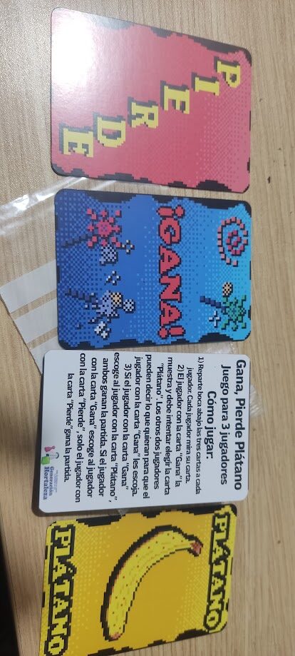 Copia de Gana, Pierde, Plátano: Hace años hicimos nuestra versión casera de Gana Pierde Plátano como experimento. Resultó ser un juego que funciona demasiado bien en un ambiente desenfadado y sería una pena que estuviera limitado a nuestras sesiones. Ahora, podrás tenerlo tú por el módico precio de 3 euros. Las cartas tendrán un tamaño estándar, conocido como Ocean.