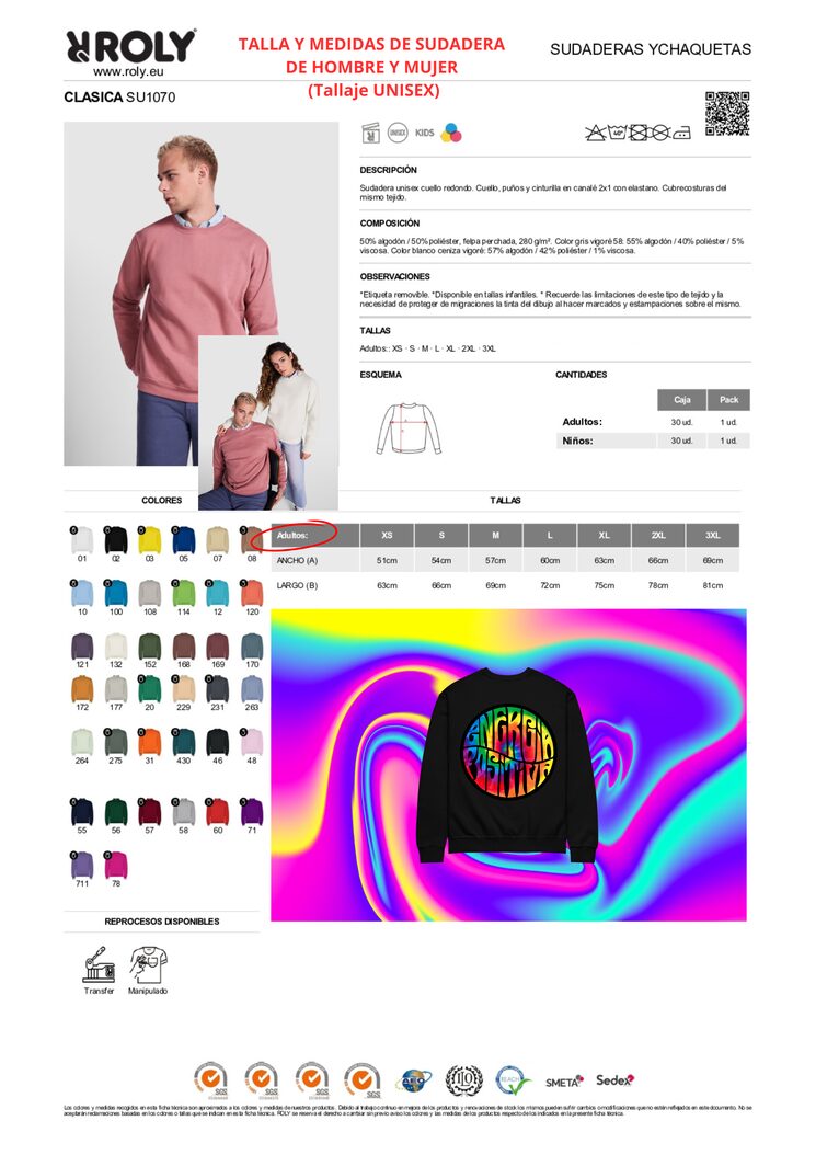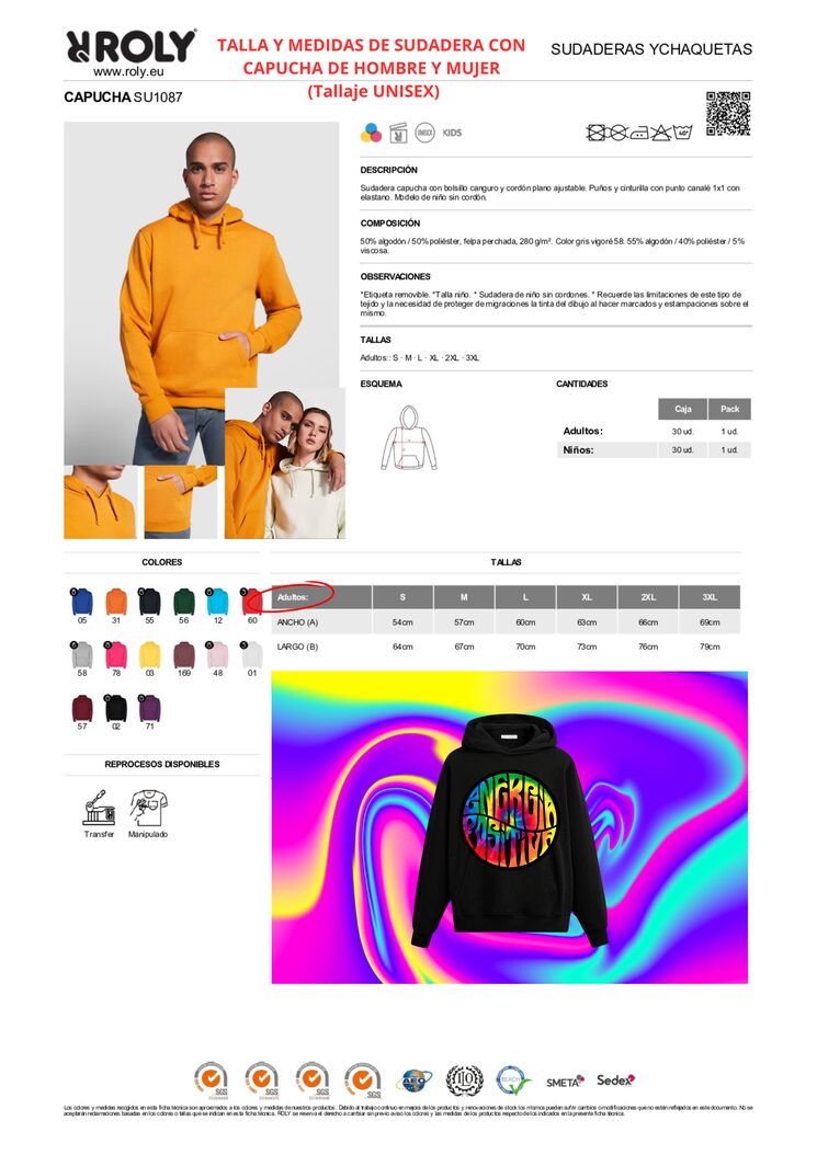 Solo las sudaderas "con capucha" están disponibles para adultos y niños de 3 a 12 años, consultar bien las tallas. De la XS a la 4XL adulto, el resto talla de niño.