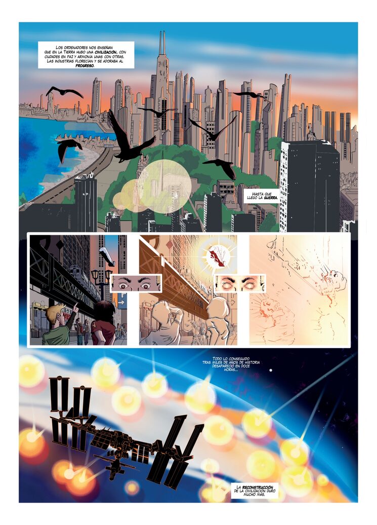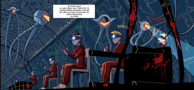 Ciudad Aguja es un cómic ambientado en un futuro postapocalíptico donde la humanidad ha sido rediseñada.