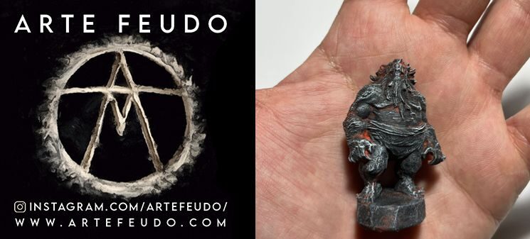 También damos la opción de que el mecenas pueda llevarse una espectacular figura de 15 cm, realizada en resina y polvo de mármol, pintada a mano, por ARTE FEUDO del Ojáncano. Esta recompensa es una segunda edición numerada y se entrega en su caja individual con un certificado de autenticidad.