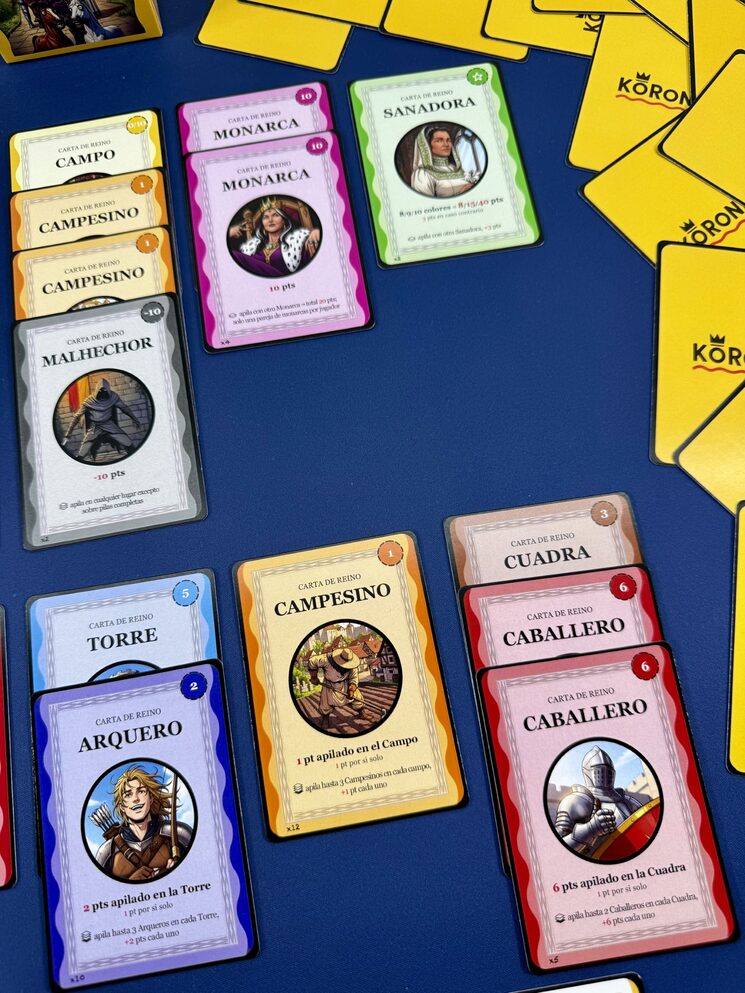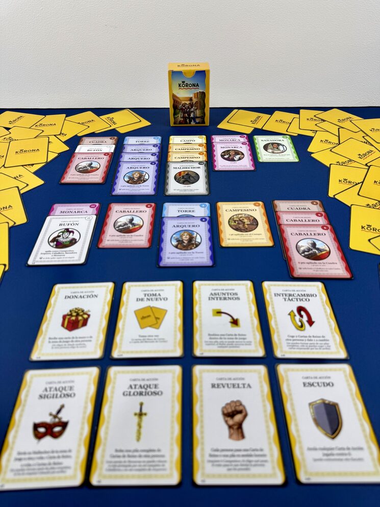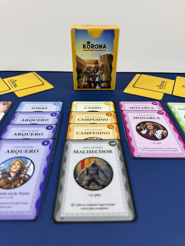 Se trata de un juego táctico y dinámico, de partidas rápidas de apenas 20 minutos que puedes llevar y jugar en cualquier lugar (¡incluso sobre la toalla en la piscina!). El apartado visual destaca por unas ilustraciones desenfadadas que dan vida a personajes de la época medieval; algunos de ellos, en la edición del juego de la Corona de Aragón, inspirados en figuras ilustres como Pedro IV el Ceremonioso, Jaime I el Conquistador, Leonor de Sicilia o Violante de Hungría. Pero el reino no se detiene ahí: desde caballeros, arqueros, campesinos y sanadoras hasta bufones y malhechores que harán de las suyas, todos forman parte del elenco de Korona con un estilo colorido y divertido